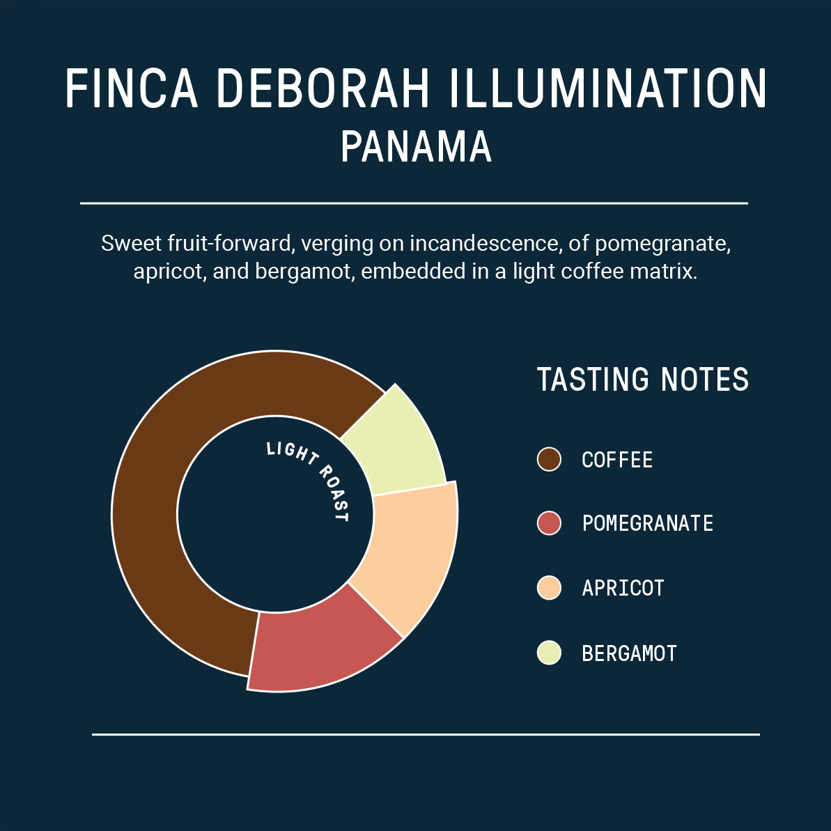 Illumination is the most experimental of our three offerings from Finca Deborah. It incorporates a relatively new processing method for coffee, carbonic maceration. Used in the wine industry for decades with the likes of Beaujolais Nouveau, carbonic maceration has been known to impart bright flavors through the integration of carbon dioxide throughout processing. Unlike wine, the use of this method for coffee is relatively new, with Jamison Savage of Finca Deborah being one of the major industry leaders in fine-tuning the process. Coffee cherries are carefully selected, pulped, placed in tanks and monitored closely for PH, temperatures, and levels of Co2. The resulting coffee that emerges is an exceptional burst of florals, heavy fruit notes, and an unmistakable effervescence.