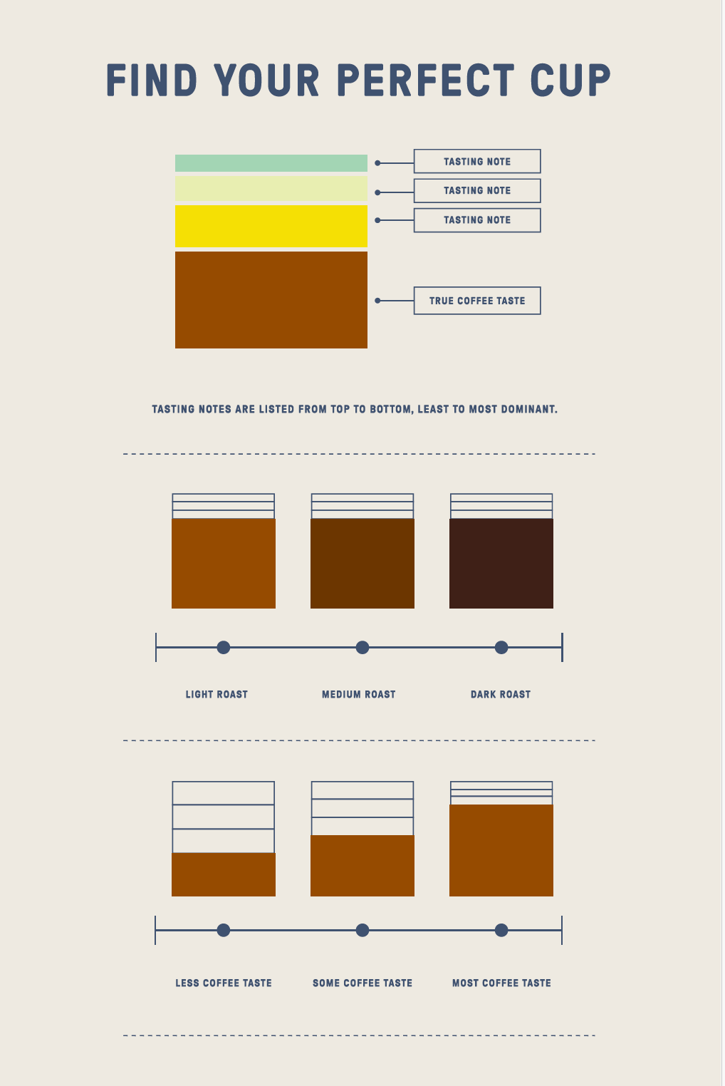 Every palette features four colors, each hue representing a tasting note - a distinct nuance that reflects the coffee’s origin, variety, and processing.