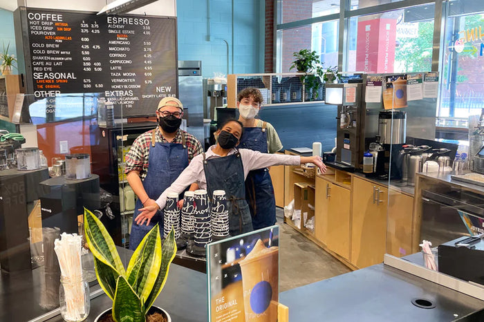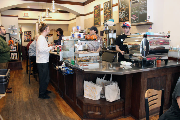 Skip the line and order your favorite coffee, Seven Stars Bakery pastries, Breakfast Sandwiches (Godfrey only) or select retail beans and equipment for pick-up quickly and easily through Toast TakeOut.