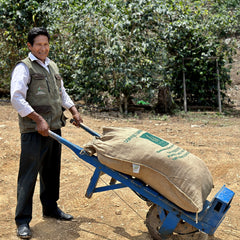 The labor and craftsmanship that Wilson puts into his work is incredible. He transports his coffee down the mountain in wheelbarrows, one bag at a time, avoiding the use of machinery on difficult terrain that could damage the beans, or donkeys which he believes affect the smell and quality of the coffee. His commitment to his craft is obvious in the cup.