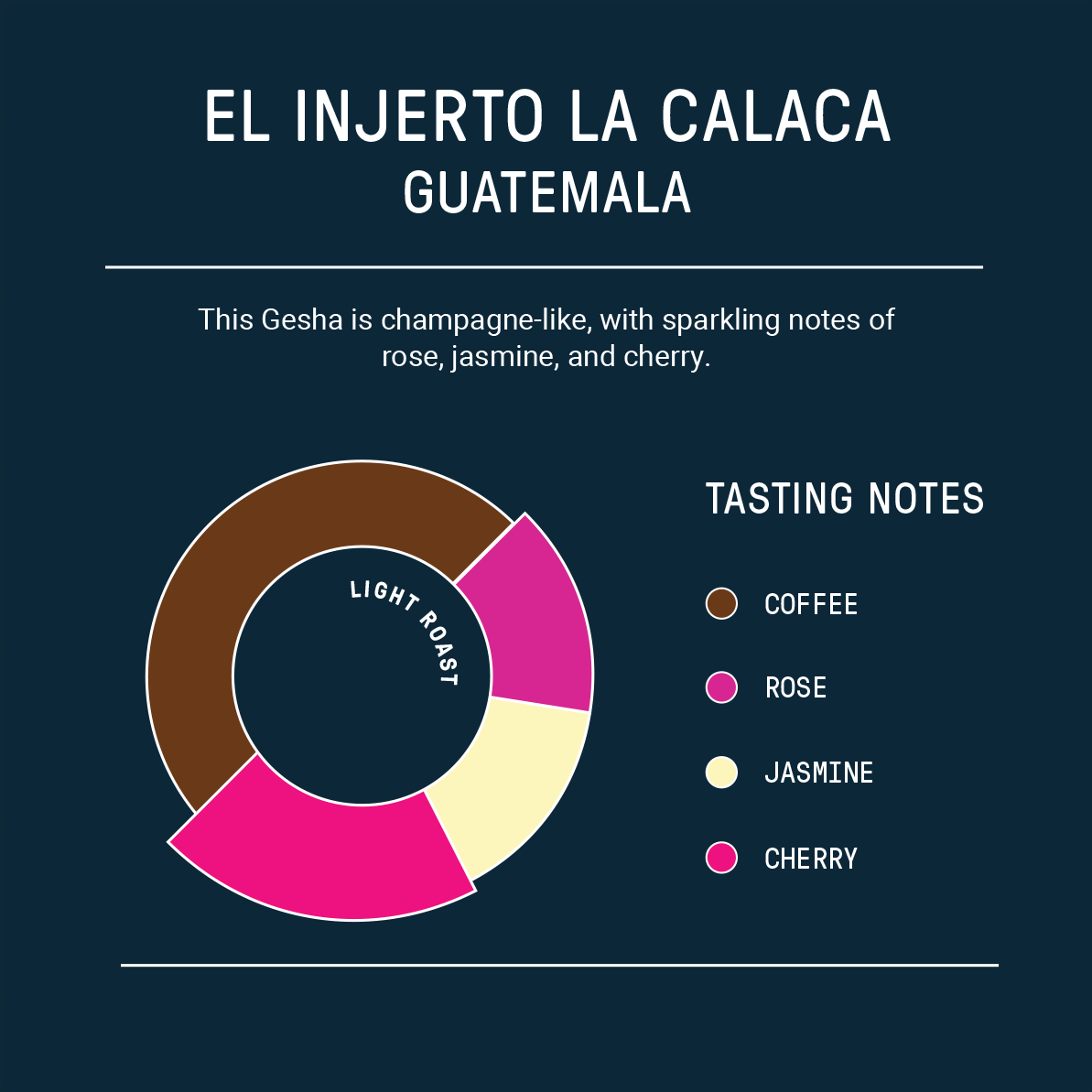 La Calaca is a naturally processed champagne-like gesha coffee with sparkling notes of rose, jasmine, and cherry. The cup is lively, and one of our best coffees of 2024!