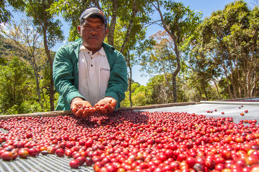 Unlike the washed production method where coffee cherries are pulped, removing the outer fruit from the seed within, natural-processing allows the cherry to remain fully intact from its harvest until it is completely dried. A difficult process, much care and dedication goes into monitoring the seeds as they dry over the course of 20 days on three-tiered, raised drying beds. The coffee is placed in “reposo,” or rests for a minimum of 45-60 days to enhance flavor and shelf life, while multiple cuppings are performed to ensure quality.