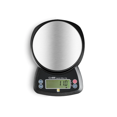 One of our favorite scales for manual brewing because of its sturdiness, capacity, and extra-large LCD display. The Jennings CJ-4000 weighs down to .5 grams and up to 4000 grams. It features an auto-off function and stainless-steel platform, reads in grams and ounces (as well as pounds and parts counting). Tare and zero functions. Runs on 3 AAA batteries with AC adapter included.