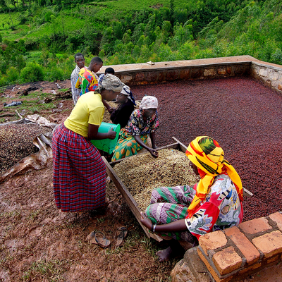 Small farmers – many have less than 200 trees – bring their carefully picked cherries to the Kanzu washing station where they are processed. Kanzu is meticulous in the care it takes to remove all the ripe fruit, ferment, and evenly dry the beans, which is showcased through its full-bodied, sweet and elegant cup.