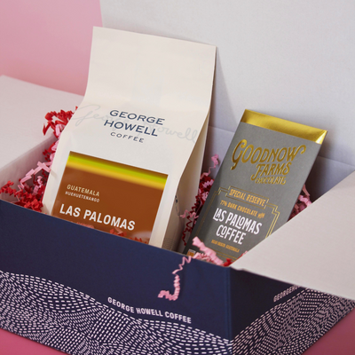 Our Valentine’s Day Las Palomas coffee + chocolate box is the perfect pairing for lovers of single-origin and quality roasted beans. This set includes a 12oz bag of Las Palomas and a Goodnow Farms Chocolate special reserve bar infused with our Las Palomas.