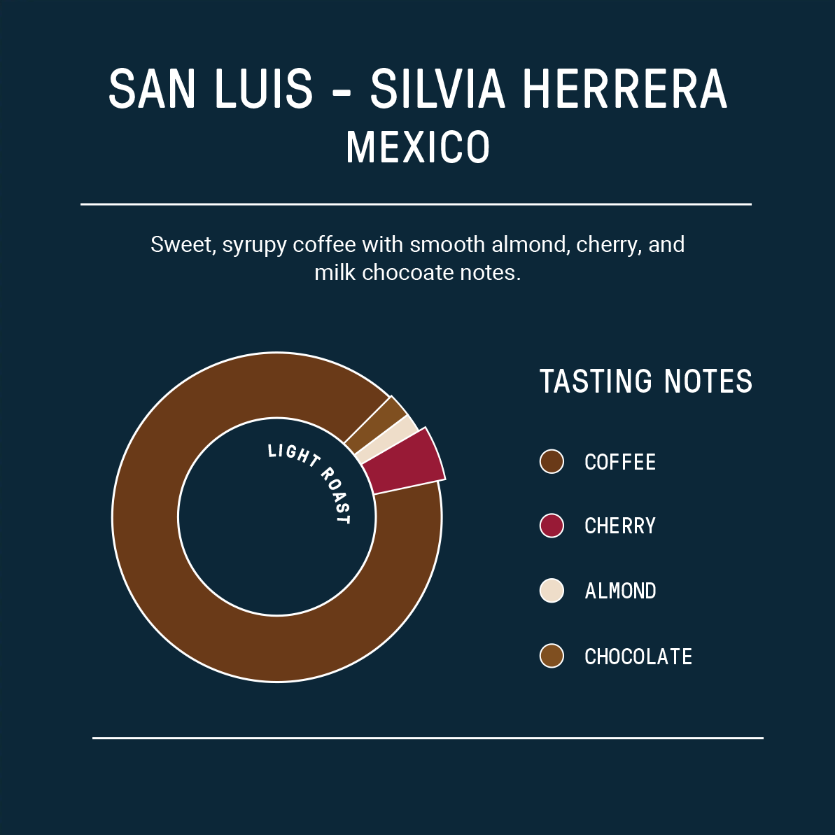 Silvia Herrera, a second-generation farmer and two - time CoE presidential winner, has dedicated her life to elevating coffee. She manages a 124 acre farm with six family members. Divided into small plots for different varieties. Her meticulous approach results in a coffee that is sweet and syrupy with smooth almond, cherry, and milk chocolate notes.