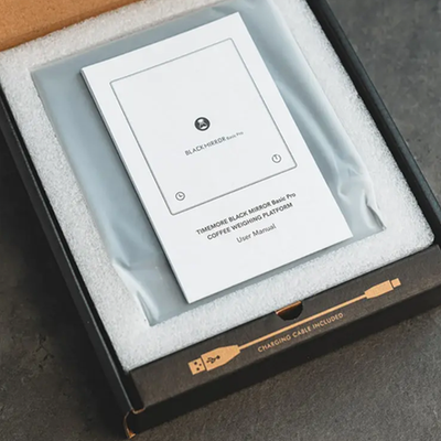 The TIMEMORE Black Mirror Basic Pro Weighing Panel is a single sensor scale with flow rate function. It has a built-in timer function, and a one-tenth of a gram precision with an ultra-fast response time. A non-skid silicone pad is included.