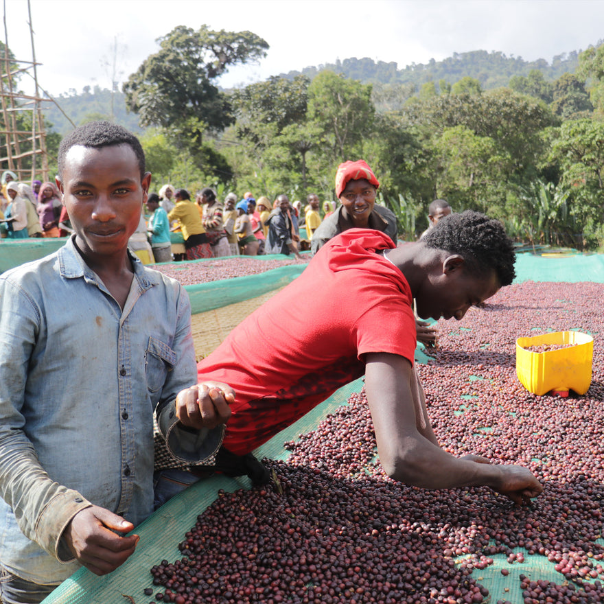 Worka Chelbessa services many small farms surrounding it. Their heirloom varieties belong to the forests surrounding them. The farms belong to the Yirgacheffe terroir, famous for introducing unique native Ethiopian floral coffees. The cup has a soft, rounded caramel note with a delicate cherry blossom scent, a touch of stewed peach, and a honeyed finish.